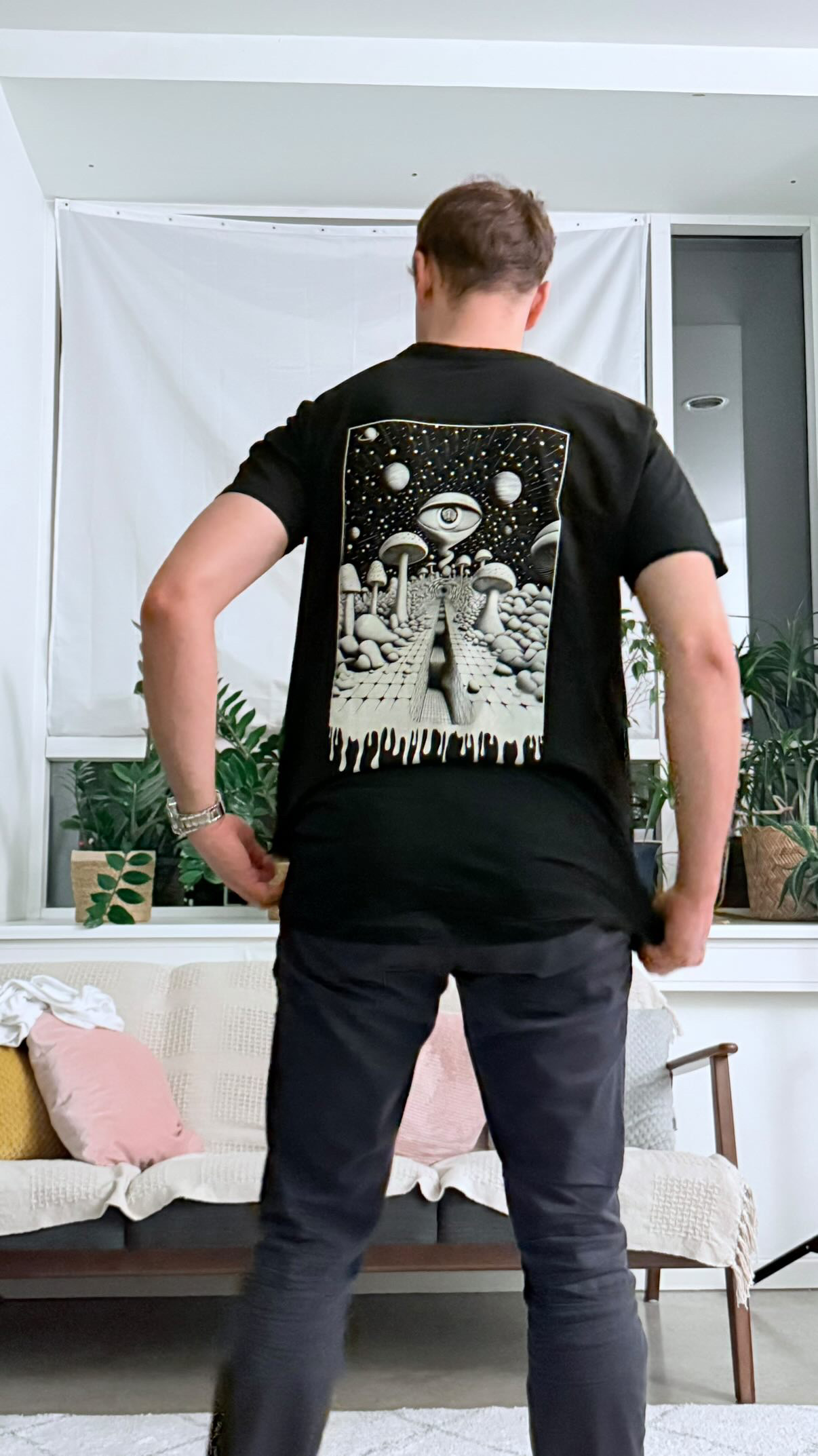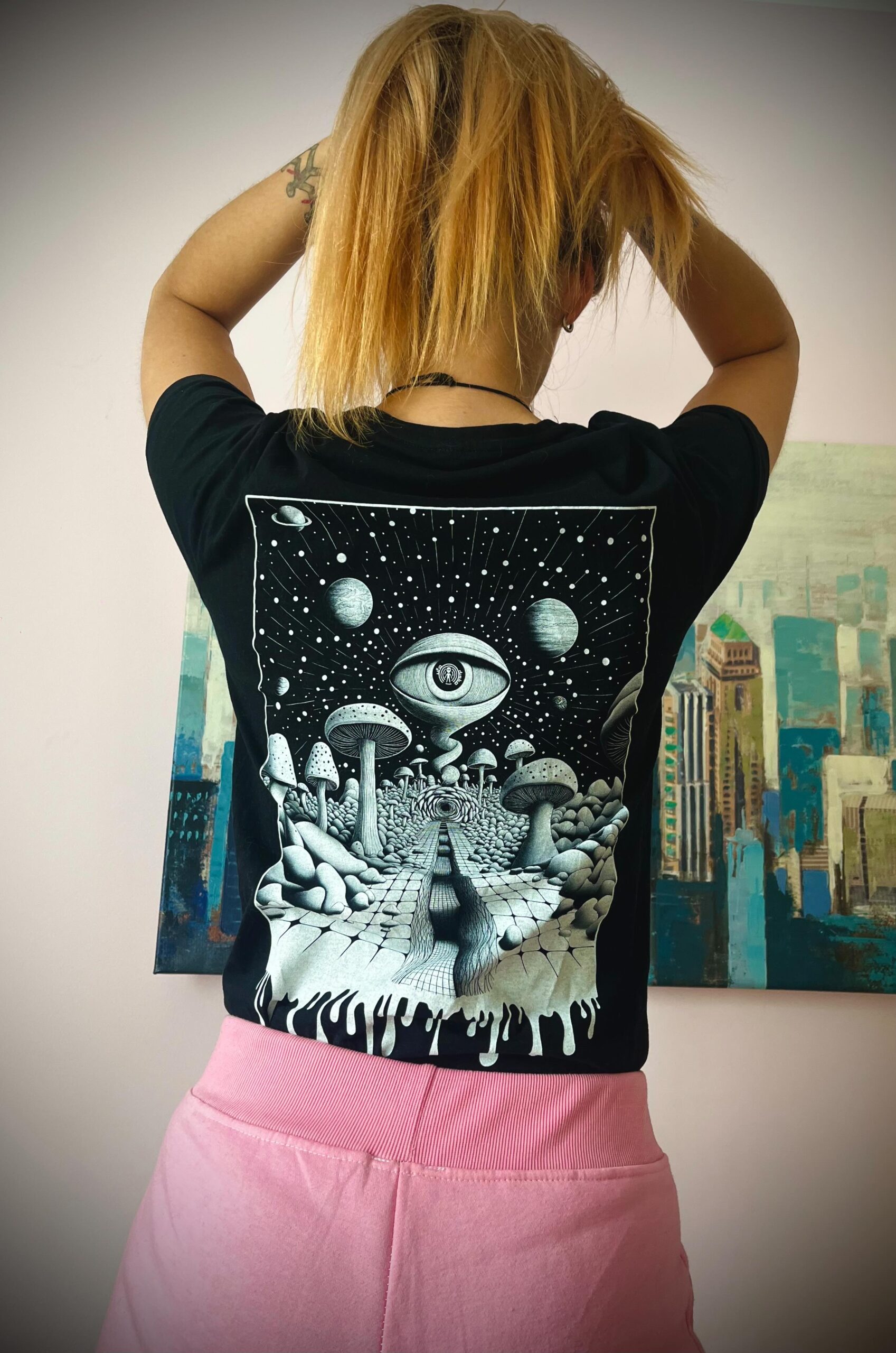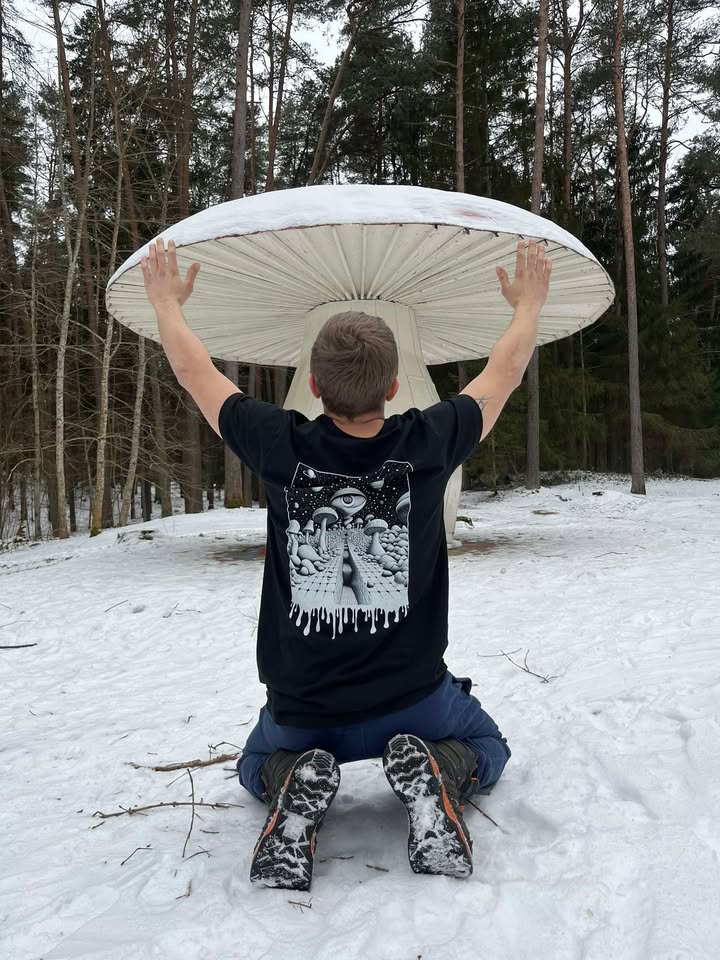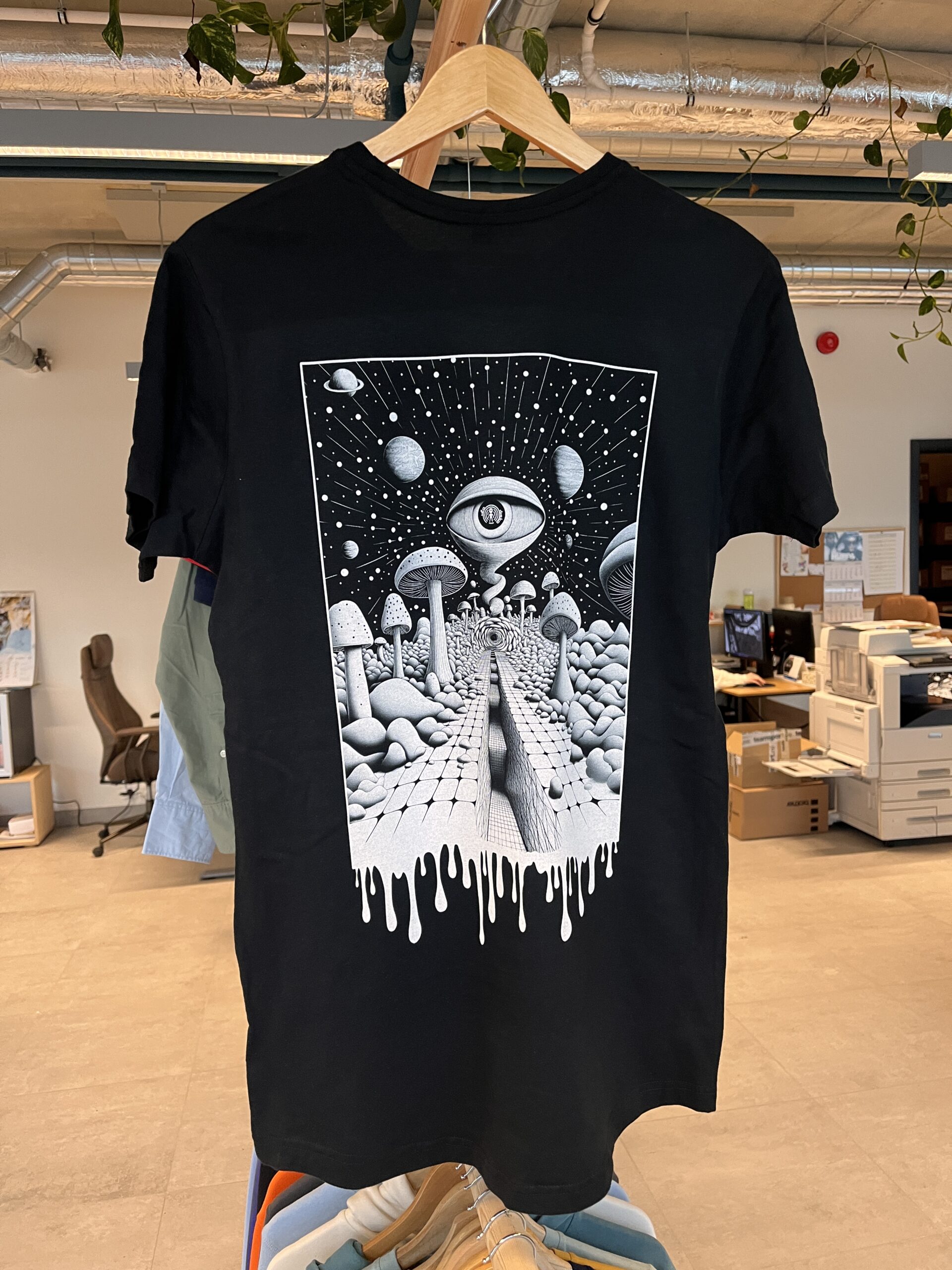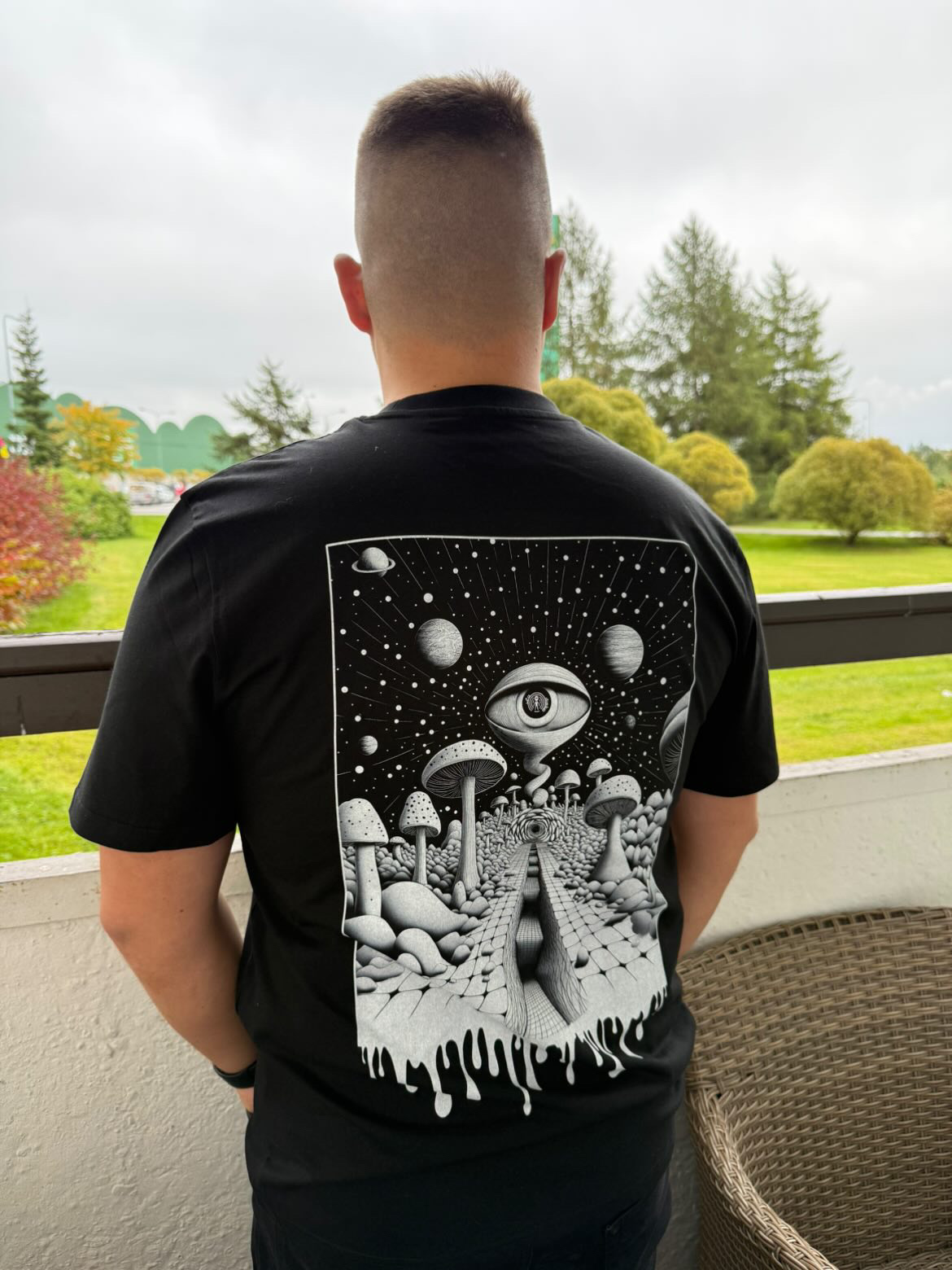 Detailne DTG print, rinnal valge ufodisko logo ning seened seljal. Pikem lõige = pisut pikema lõikega särk, 100% puuvill, 140 gms, kerge, kvaliteetne, mugav ja õhuline Standard = klassikalise lõikega, mugav ja kvaliteetne särk, 100% orgaaniline puuvill, 180 gms